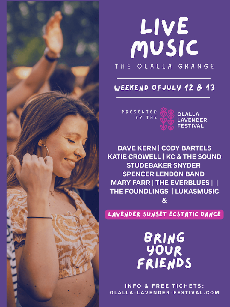 During the Lavender Festival, the Olalla Grange meadow was filled with incredible live music from talented local and regional artists. We’re proud to have hosted part of this vibrant lineup right here at the Grange! You can explore the full music lineup, and maybe find your new favorite band, on the Lavender Festival website Live Music dedicated page.